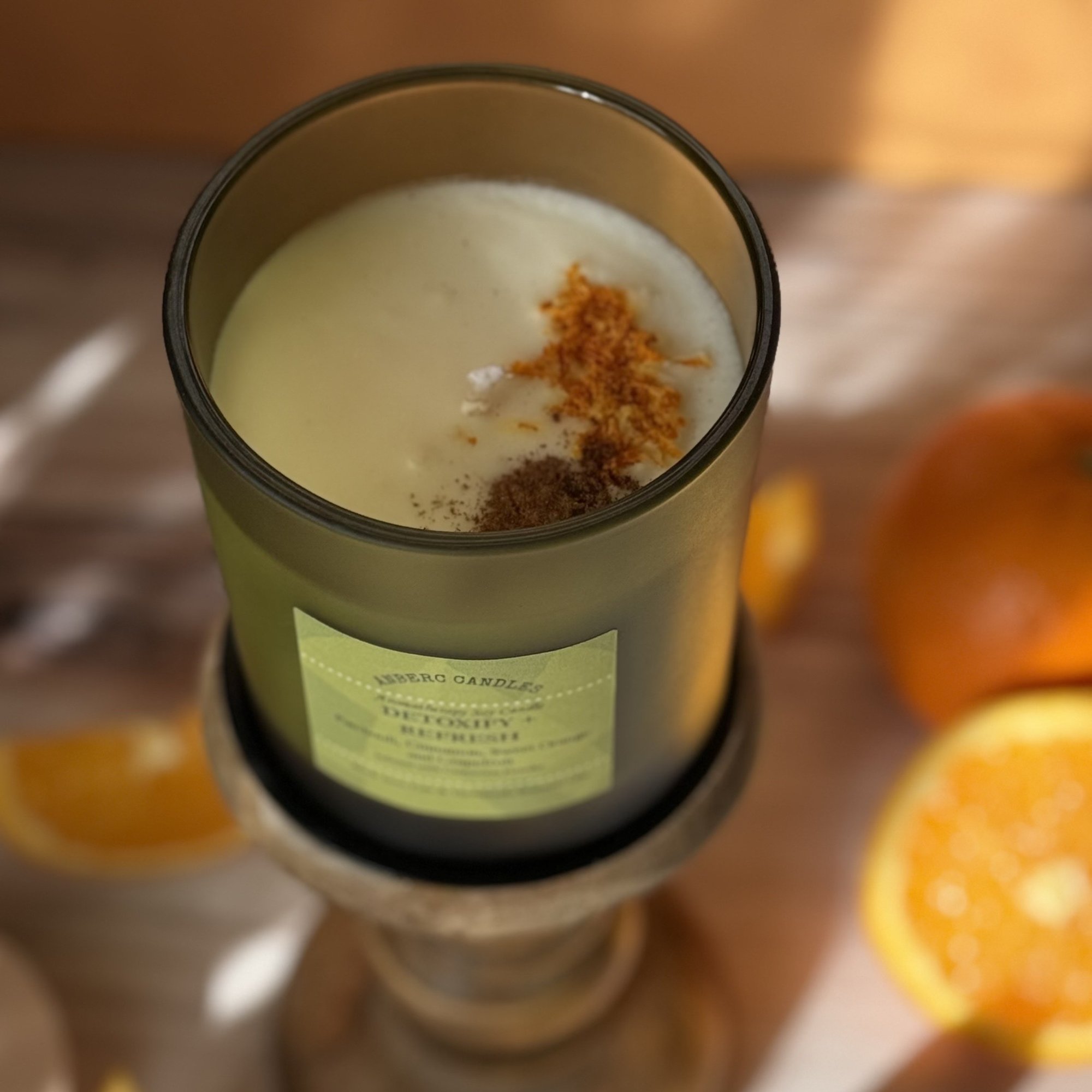 It has a blend of Patchouli, Cinnamon, Sweet Orange, and Grapefruit Therapeutic Essential Oils infused with Cinnamon Powder and Orange Zest. Great for alleviating depression, combats stress and anxiety, and uplifting the mind. It will also leave your space smelling fresh and clean.